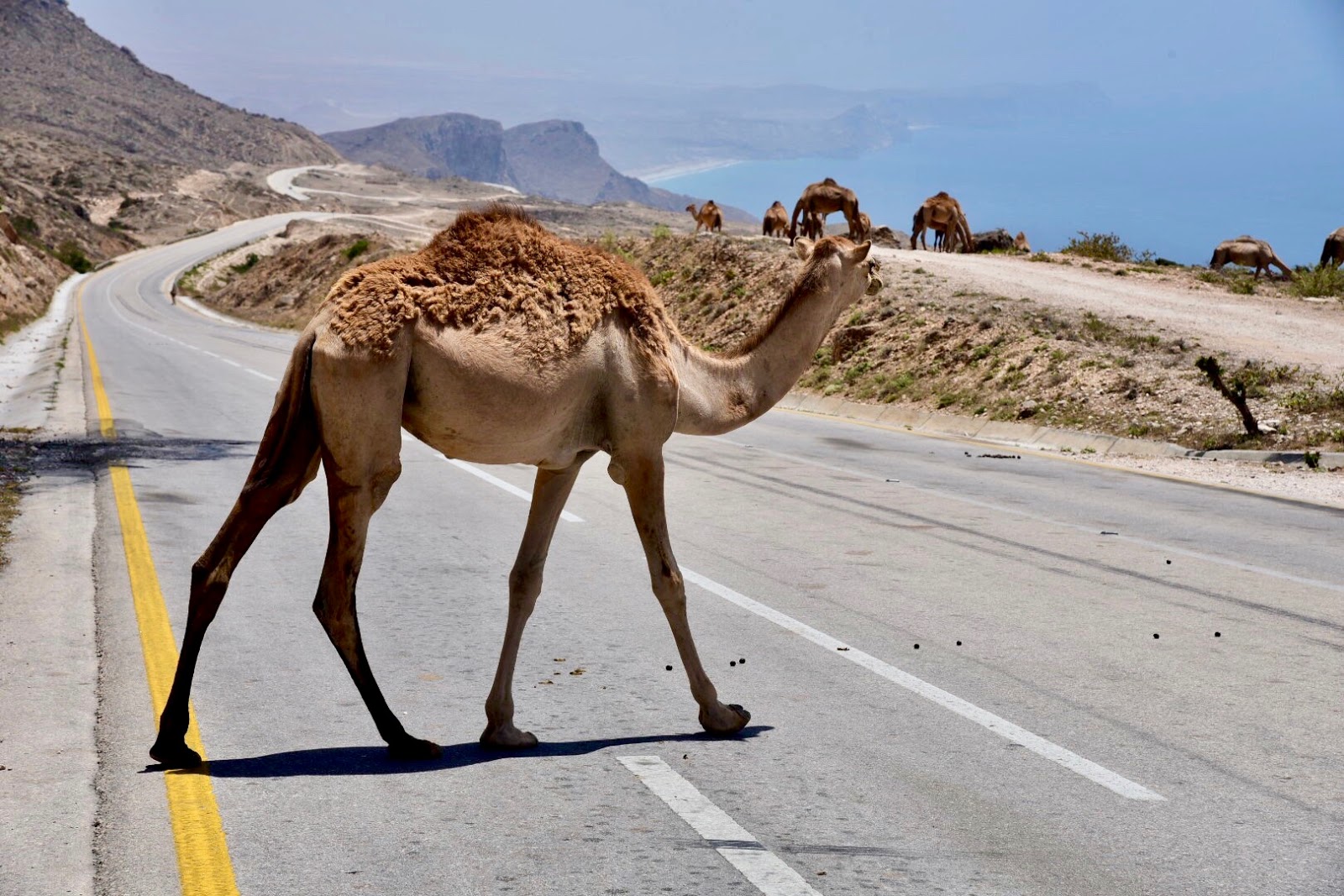 Camels are a common sight almost everywhere you go, most probably you will have to slow down more than once to let them pass the highway.