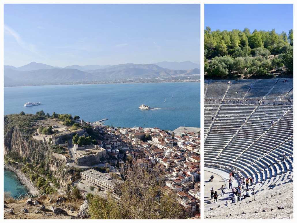 A must-do sight in Nafplio’s surround is the Epidaurus amphitheater, one of the best-preserved of Greece’s ancient sites, a UNESCO World Heritage Site. If you do a half-day trip, you can also visit a second such site, either Mycenae or Ancient Nemea. We opted for the lesser visited latter, which you could combine with a wine tasting in the area (we did not).